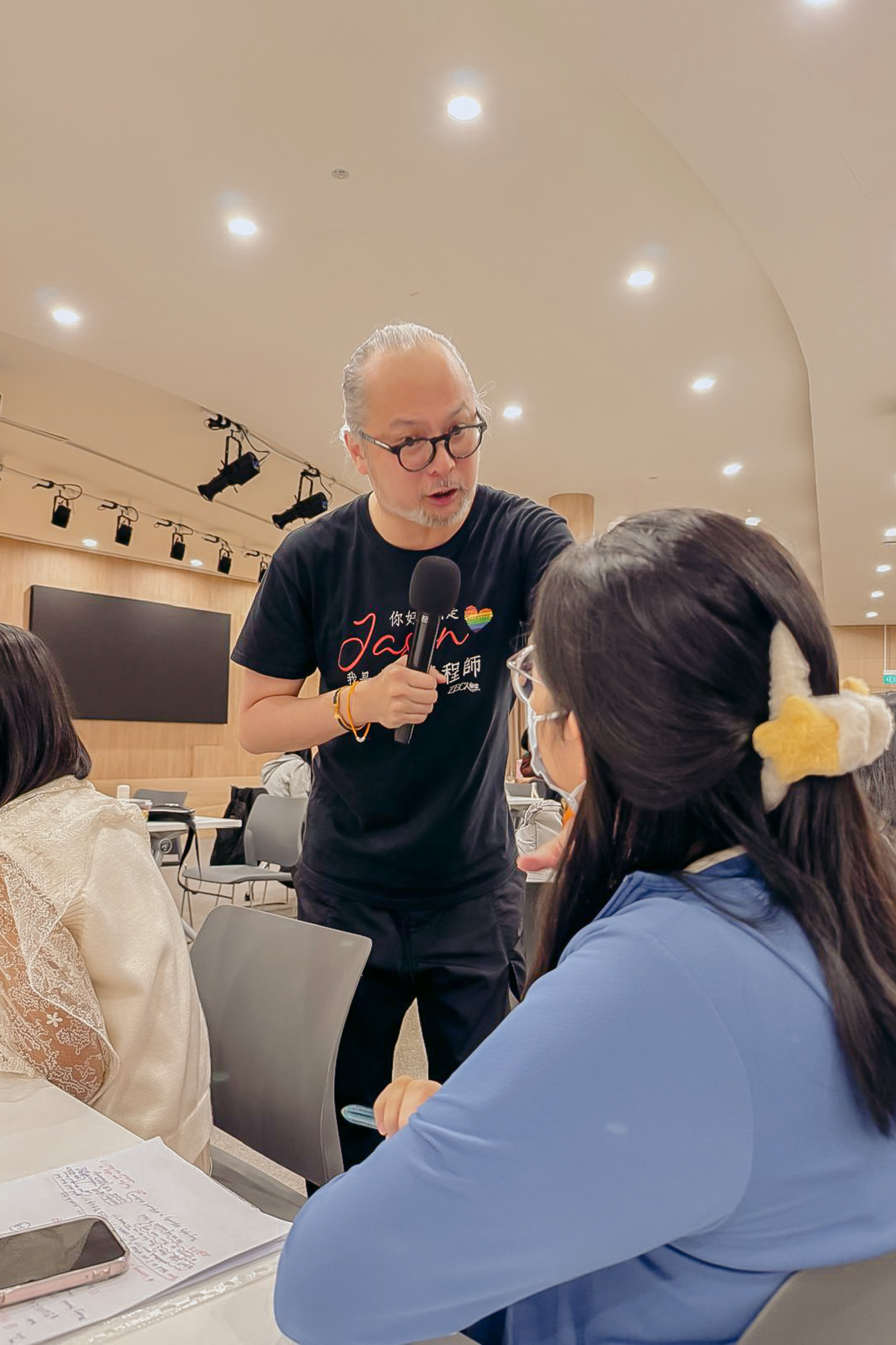 Jason Zeck Lee interacting with the teachers in a lively and engaging manner, guiding them to rediscover their original motivation for joining the early childhood education field through thought-provoking questions. (Photo by Au Foong Yee)