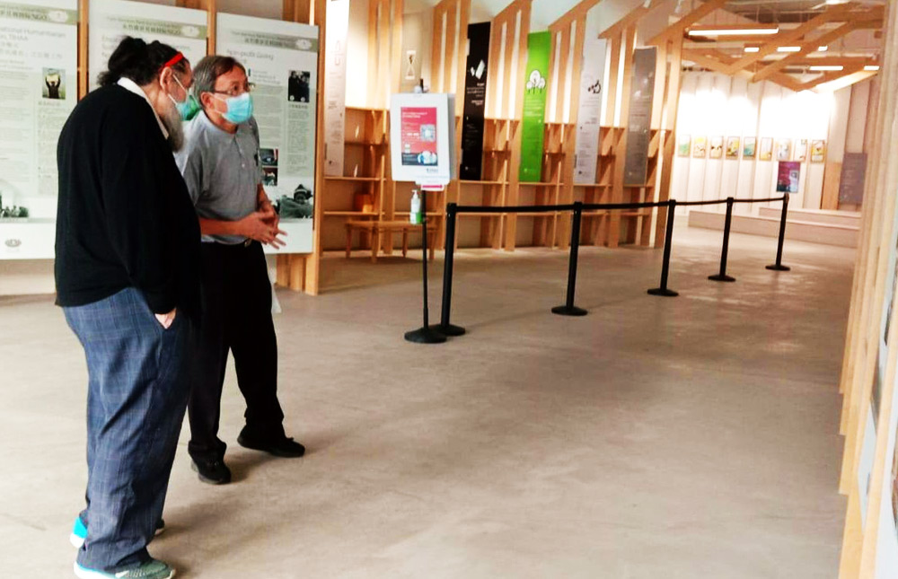 薛林纳在志工吴南凯的陪同下,初次参访慈济人文青年中心。充满人文气息的空间让他萌生在此开画展的念头。(提供/ 吴南凯)
