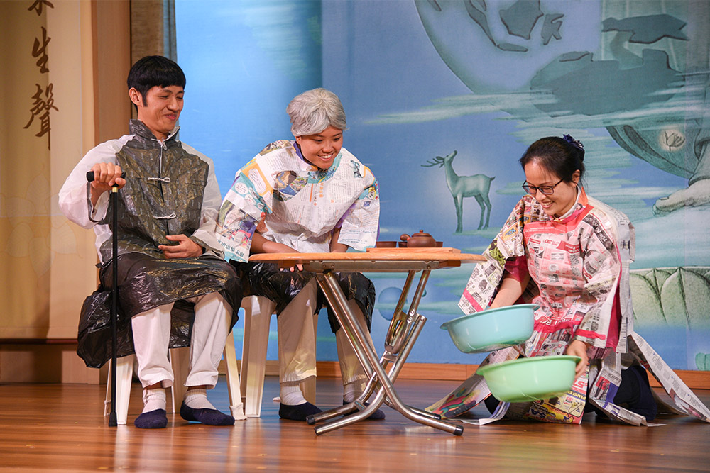 穿上环保材料制成的表演服装,志工以活泼有趣的戏剧倡导环保。(摄/ 黄瓋莹)