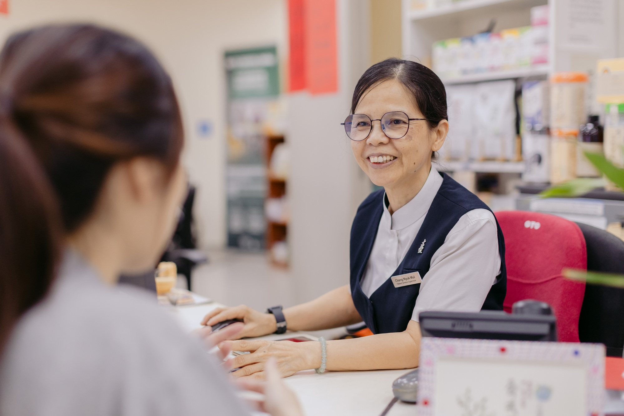 活跃于慈济志工服务的郑淯镁,在2014年5月成为慈济接管的湖畔全科医疗诊所的职工,主要负责前台登记和接待工作。