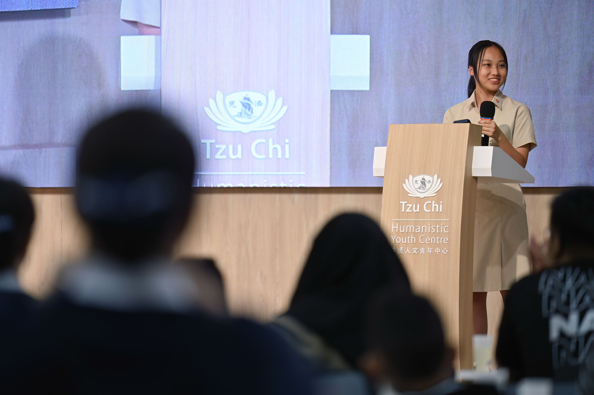 2025年12月21日,“新芽励学金暨感恩典礼”于慈济人文青年中心举行。今年共颁发六项奖项,即全勤奖、孝悌奖、品格优良奖、学习杰出奖、学习进步奖及课外杰出奖,共表扬了57位学子。值得一提的是,志工和慈少在典礼开场前共同设置了活动站,以游戏的方式向参与者推广环保理念,展现青年世代对永续议题的关注。