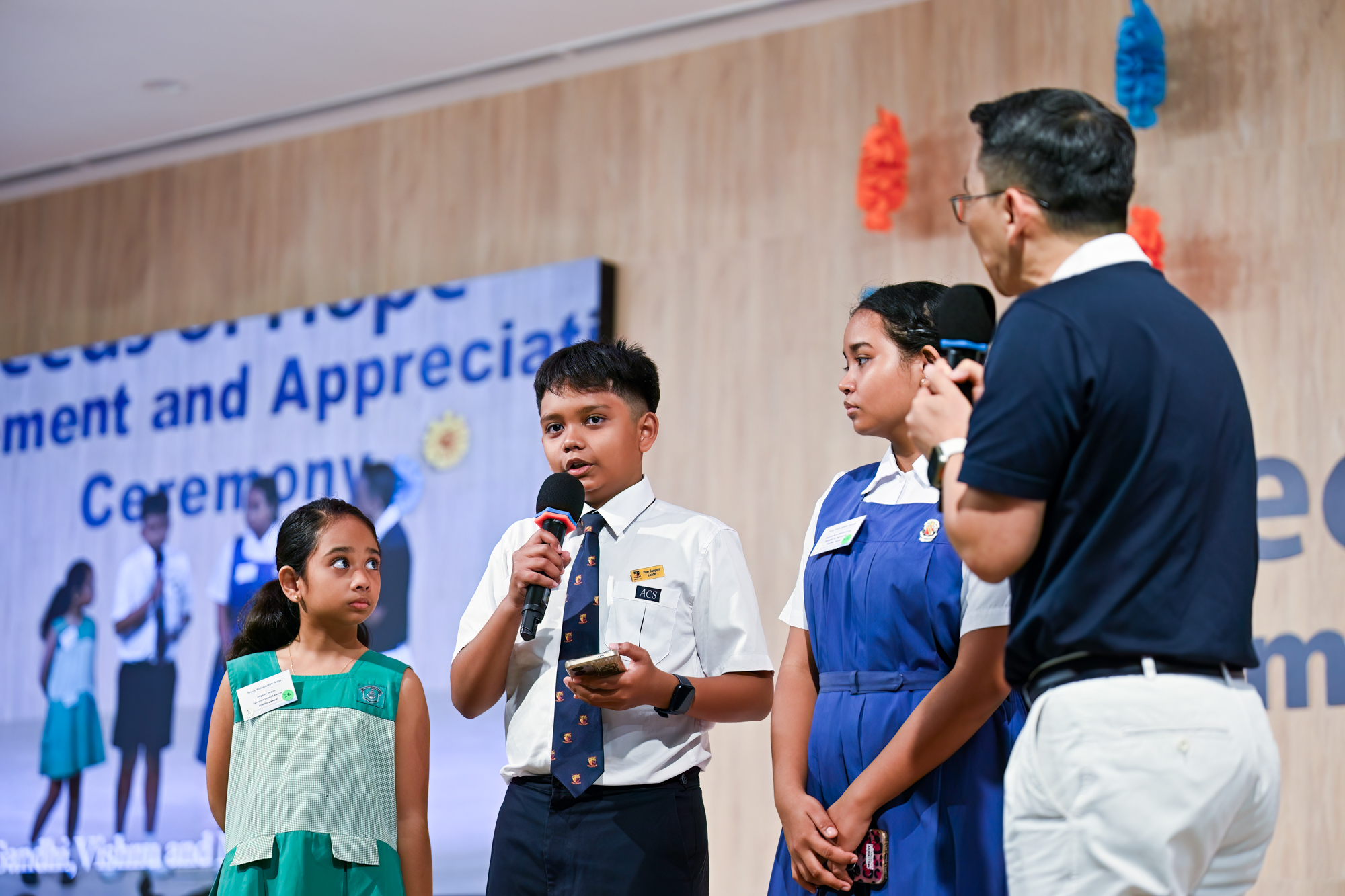 在本届新芽励学金颁奖典礼上,甘迪(Gandhi)、维什努(Vishnu)与玛哈拉希米(Mahalakshmi)三姐弟一同上台分享他们三年来的心得。