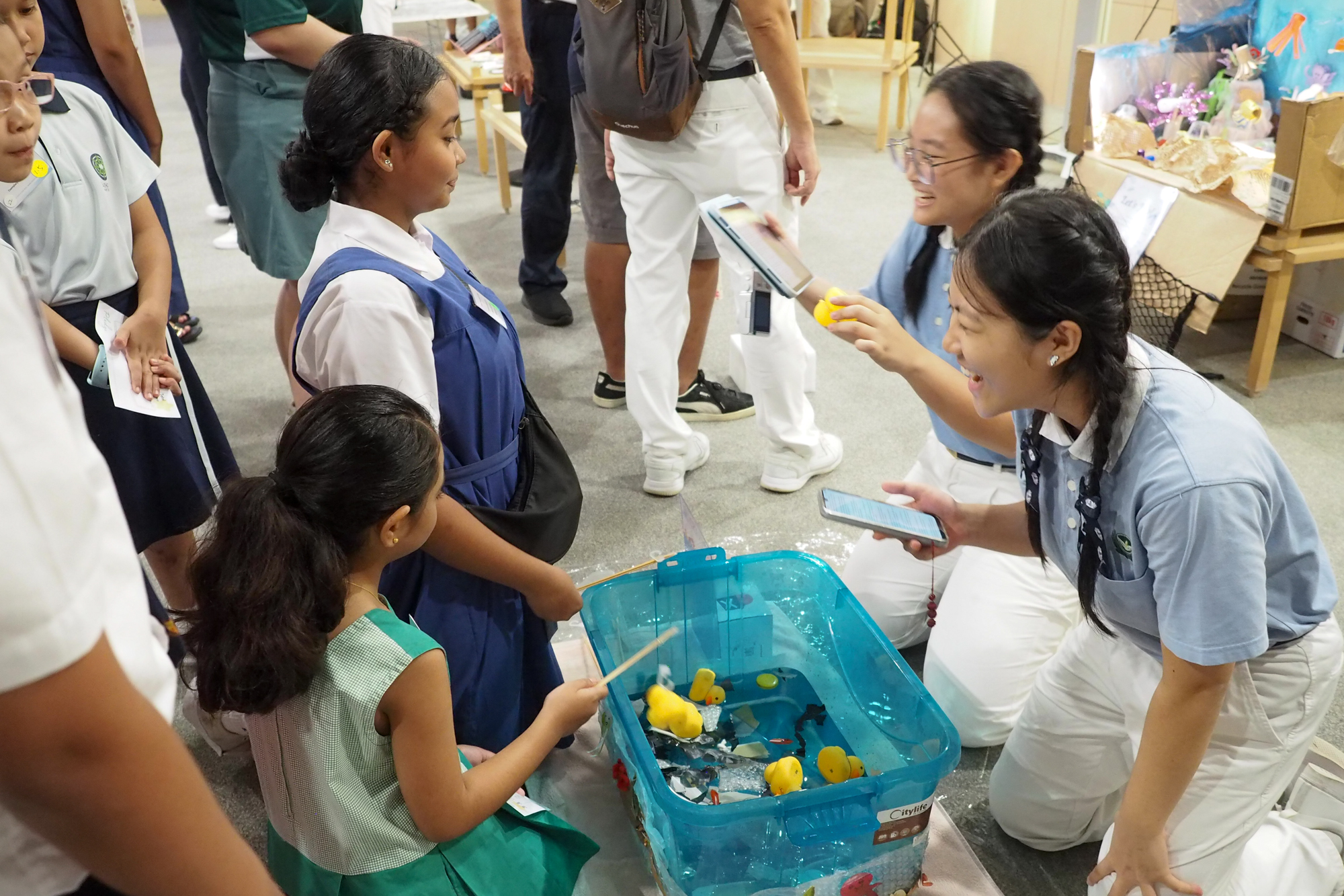 慈少耐心地为学生们讲解环保小游戏的游戏规则。摄/ 张谋盛